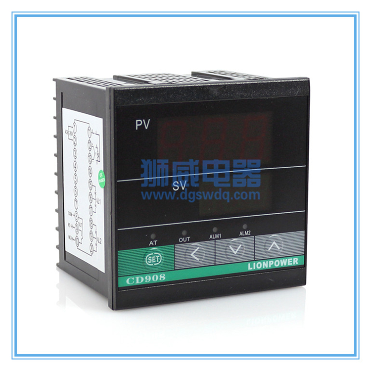 产品特点 一、 概述 CD系列温控表是采用PHILIPS专用微处理器的多功能调节仪表,它采用开关电源和表面贴装技术,因而仪表具有重量轻,体积小巧,性能可靠,抗干扰强等优点。特有专